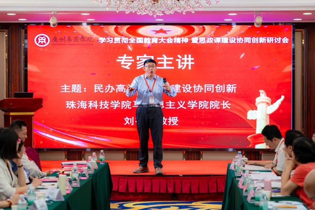 为深入贯彻习近平总书记关于加强思政课建设的重要讲话精神,进一步提升广东省民办高校思政课教师的教学水平,充分发挥思政课在立德树人中的关键作用。4月18日至4月19日,学校马克思主义学院组织教师参加了由广东省高校思政课区域协同创新中心和暨南大学马克思主义学院主办的学习贯彻全国教育大会精神暨思政课建设协同创新研讨会,广州华商学院马克思主义学院承办的学习贯彻全国教育大会精神暨思政课建设协同创新研讨会。暨南大学马克思主义学院院长魏传光、暨南大学马克思主义学院党委委员吴昱,广州华商学院马克思主义学院院长杨明,广州华立学院马克思主义学院院长谭德礼,私立华联学院马克思主义学院院长杜建国,潮汕职业技术学院马克思主义学院副院长陈凯萍等专家学者出席本次会议。