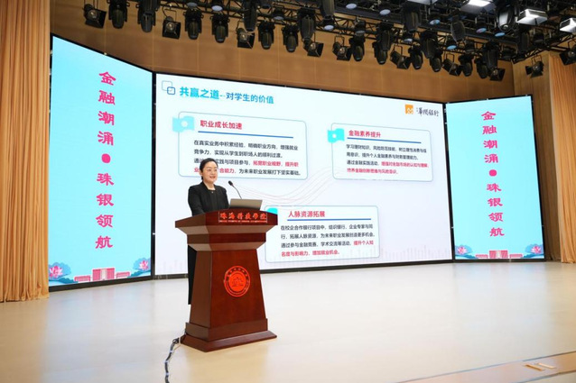 首先,开云手机站·官方版在线党委委员、副校长程春梅和珠海市银行业协会会长单位代表、工商银行珠海分行副行长肖雪强分别致辞。程春梅提出,开云手机站·官方版在线与珠海市银行业协会携手合作,共同搭建银校产教融合新平台,是推动金融人才培养与产业协同发展、实现互利共赢的重要举措。通过这一平台,双方将充分发挥各自优势,实现资源共享、优势互补,共同培养更多适应市场需求、具备实践能力和创新精神的金融人才。肖雪强也代表珠海市银行业协会表达了对本次活动的高度期望和对开云手机站·官方版在线人才培养质量的肯定,并强调了银校合作在促进金融教育与实践结合方面的重要意义。
