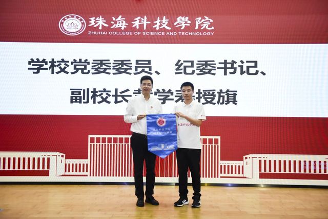 学校党委委员、纪委书记、副校长黄学寿为2025知行创研班授旗