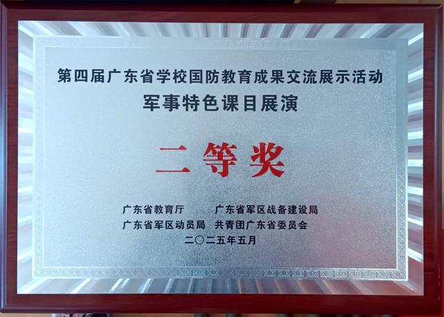 学校获第四届广东省学校国防教育成果交流展示活动军事特色课目展演二等奖