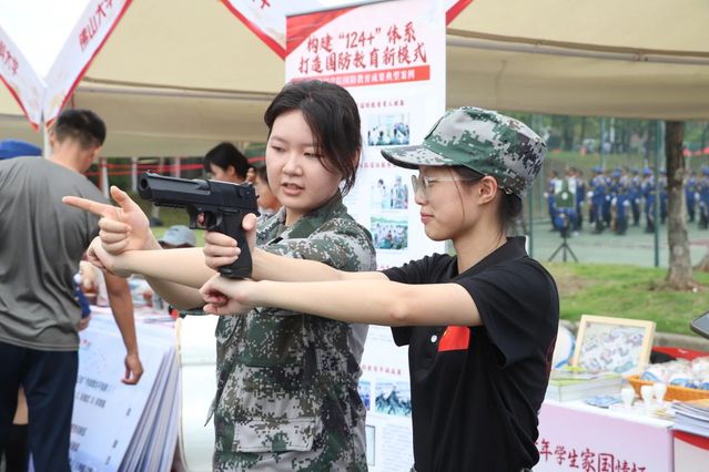 在国防教育展示摊位活动现场,前来参观的同学积极参与我校军事课目体验、武器装备展示和国防知识问答等环节,进一步丰富了他们的国防知识,增强了国防意识。