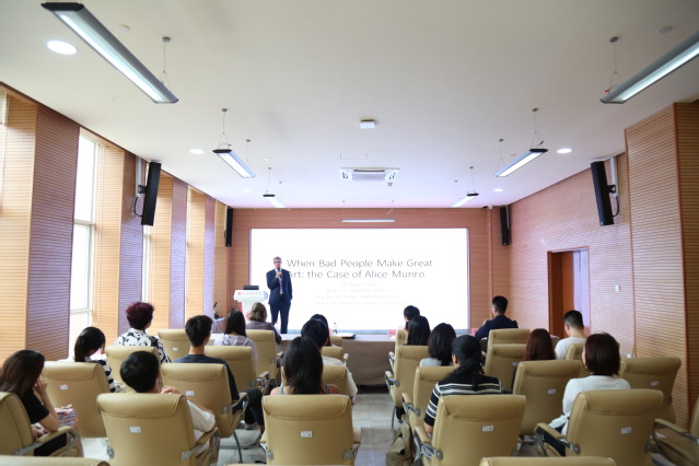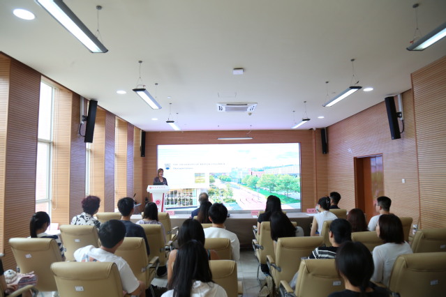 来访期间,Bryce Traister还与我校外国语学院和文学院学生进行了交流,他鼓励同学们广泛阅读文学作品,感受文字的魅力与深度。Meilan P. Ehlert为我校学生介绍了不列颠哥伦比亚大学的基本情况,还分享了校园文化、特色专业以及学习生活环境。