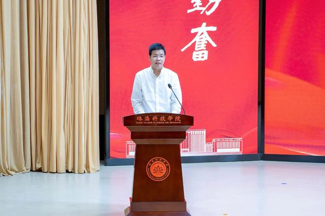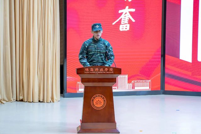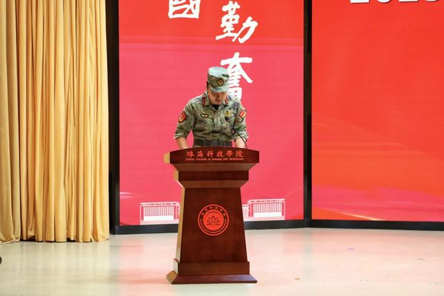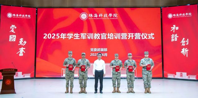 为筑牢军训育人根基,提高我校教官组训水平。6月14日,我校在国学院报告厅开展2025年学生军训教官培训营开营仪式。校党委委员、纪委书记、副校长黄学寿,金湾区人武部上校部长张涛,校党委学生工作部部长、武装部部长、学生处处长高英杰,党委学生工作部副部长、学生处副处长郑文清、冯郡航、王彤,培训营导师黄家正、李军华、黄国委、关锦耀、卢友淦和全体学生军训教官参加本次活动。仪式由校党委武装部副部长、学生处副处长王超主持。