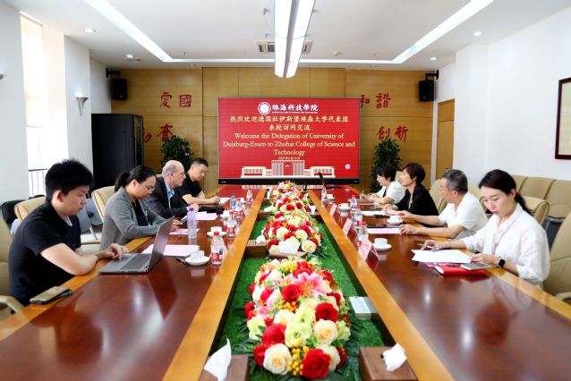 6月16日上午,德国杜伊斯堡-埃森大学城市可持续发展与物流研究学院院长Bernd Noche、城市可持续发展与物流研究所副所长兼研发主管韦福音,北京理工大学珠海校区信息科学技术学院中德智能制造与技术产业学院院长王健、对外合作部部长李骁一行来访我校。学校党委委员、副校长程春梅会见代表团,计算机学院院长梁艳春、国际交流与合作处处长董燕、教育合作发展中心主任梁明玉等参与座谈。