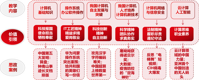 近年来,“计算机应用基础”课程教学团队积极探索课程思政教学改革,针对计算机应用基础课程教学中学生主动探索精神匮乏、专业个性化教学需求得不到很好满足、大班集体授课“情感缺失”、学生学习动力不足等问题,从设计新系列课程思政案例、自主编写思政元素新形态教材、设计课程思政教学新范式、实施立体化的课程思政教学新评价等四个方面,探索出“四新”的课程思政融合路径。