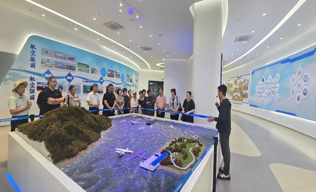 讲解员以“从航空救国、志在冲天到航空报国、航空强国”为主线,围绕“我们是谁”“回顾昨天”“把握今天”“展望未来”以及“青年担当”五个维度介绍了中航通用飞机有限责任公司及AG600的研制历程。